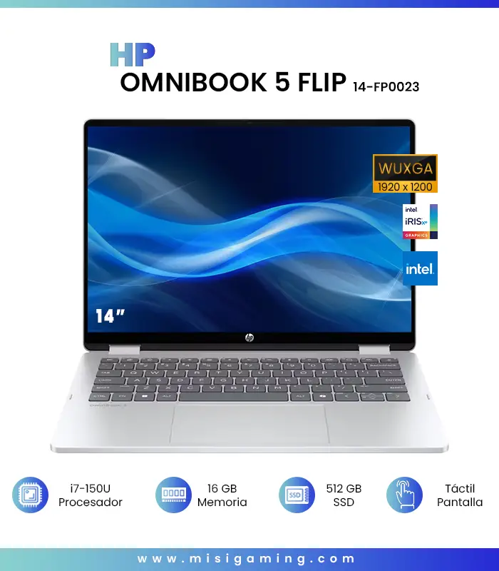 HP OmniBook 5 Flip 14-FP0013 Coreâ„¢ 5 120U 512GB SSD 8GB 14″ (1920×1200) TOUCHSCREEN WIN11 GLACIER SILVER Backlit Keyboard
